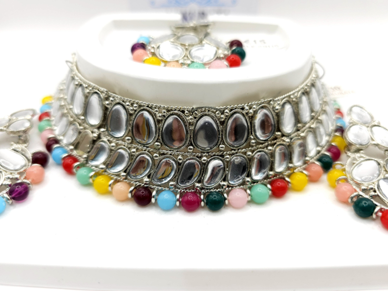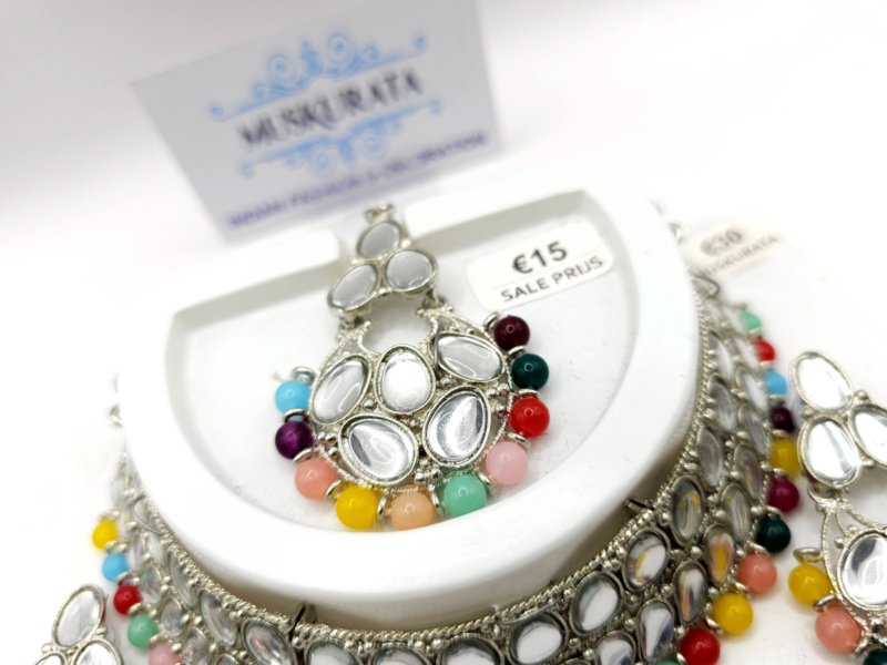 Voeg een vleugje elegantie toe aan je look met onze prachtige kettingset, compleet met bijpassende oorbellen en een sirbindi (hoofdsieraad). Deze set is perfect voor feestelijke gelegenheden, bruiloften of traditionele vieringen.