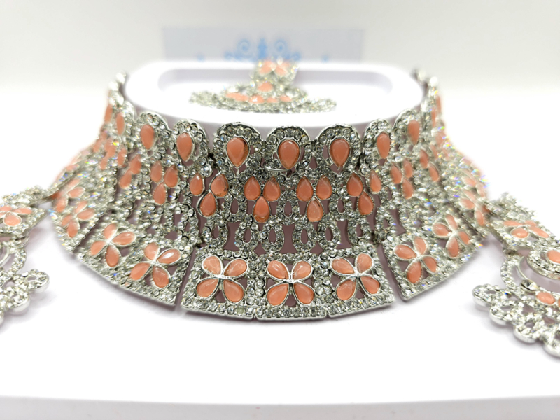 Voeg een vleugje elegantie toe aan je look met onze prachtige kettingset, compleet met bijpassende oorbellen en een sirbindi (hoofdsieraad). Deze set is perfect voor feestelijke gelegenheden, bruiloften of traditionele vieringen.